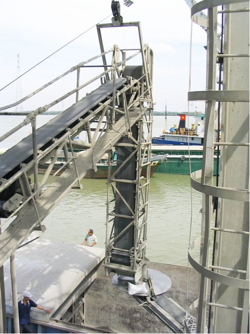 本机由悬臂段水平转动、俯仰运动及卸袋转盘回转等三组动作共同完成整套装船作业,并可在创仓内边卸袋边进行操作。其装船能力2400袋/h。