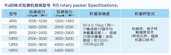 我公司生产的RS-FC型回转式包装机系列产品,是在引进德国先进技术的基础上,又吸收了新发展的意大利水泥包装理念,并结合我国水泥行业的实际,推出的新一代智能型包装机。该包装机的主要特点有:称量准、产量高;运行稳定可靠、抗干扰性强;粉尘泄露小、噪音低;易损件少、运行费用低;智能型人机界面、维护操作更简单等特点。