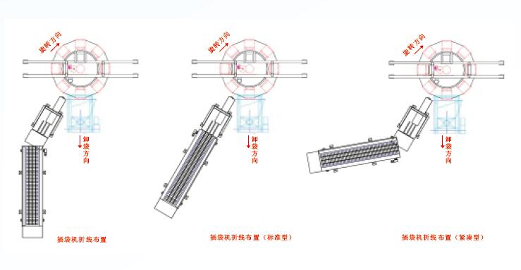自动插袋机由主机、空袋输送机二部分组成,也可再加上转台三部分组成。主机部分为核心部分,实现自动插袋功能;空袋输送机是将10-15个空袋成摞输送至自动插袋机工作平台;转台用于包装机现场的场地限制,空袋输送机空袋通过转台输送到插袋机。主机和空袋输送机组成直线工艺布置,增加转台后可以组成折线形式的工艺布置。插袋机配置专用电控柜,用于插袋系统的自动化控制,柜门上安装的触摸屏主要用于插袋机的参数调整。